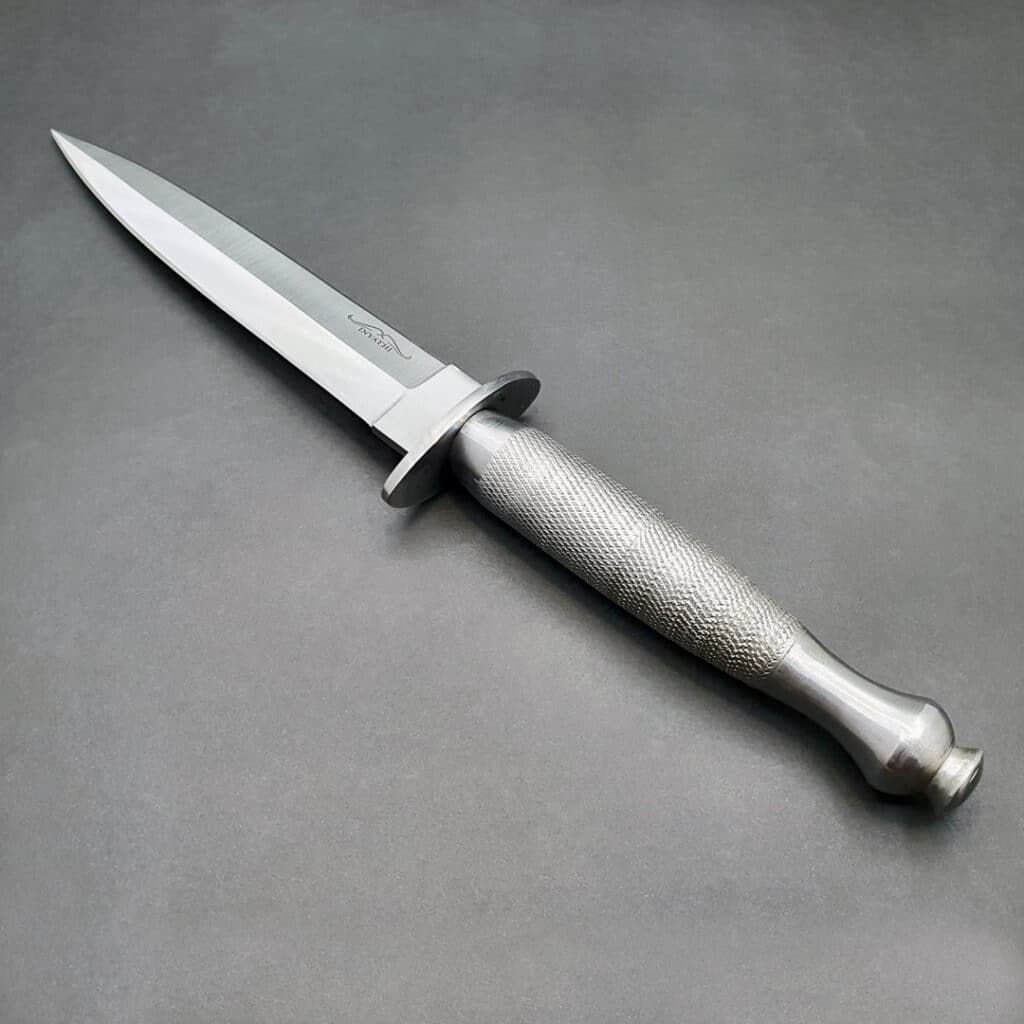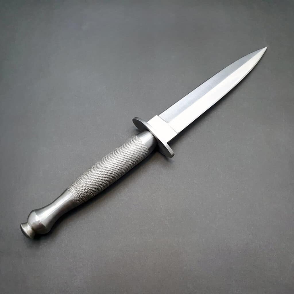 The F-S fighting knife was designed for surprise attack and fighting, with a slender blade that can easily penetrate a ribcage. The vase handle provides precise grip, and the blade’s design is especially suited to its use as a fighting knife. Fairbairn’s rationale is in his book Get Tough! (1942).