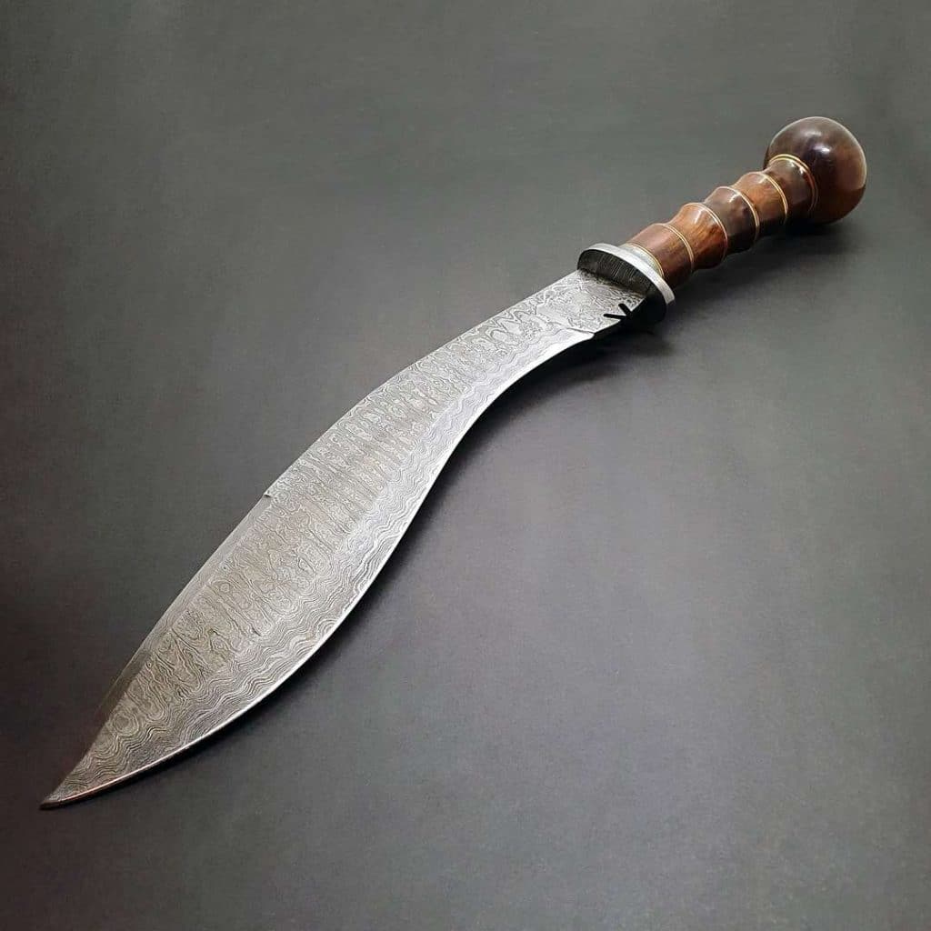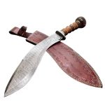 Damascus Kukri with Brown African Hardwood Handle