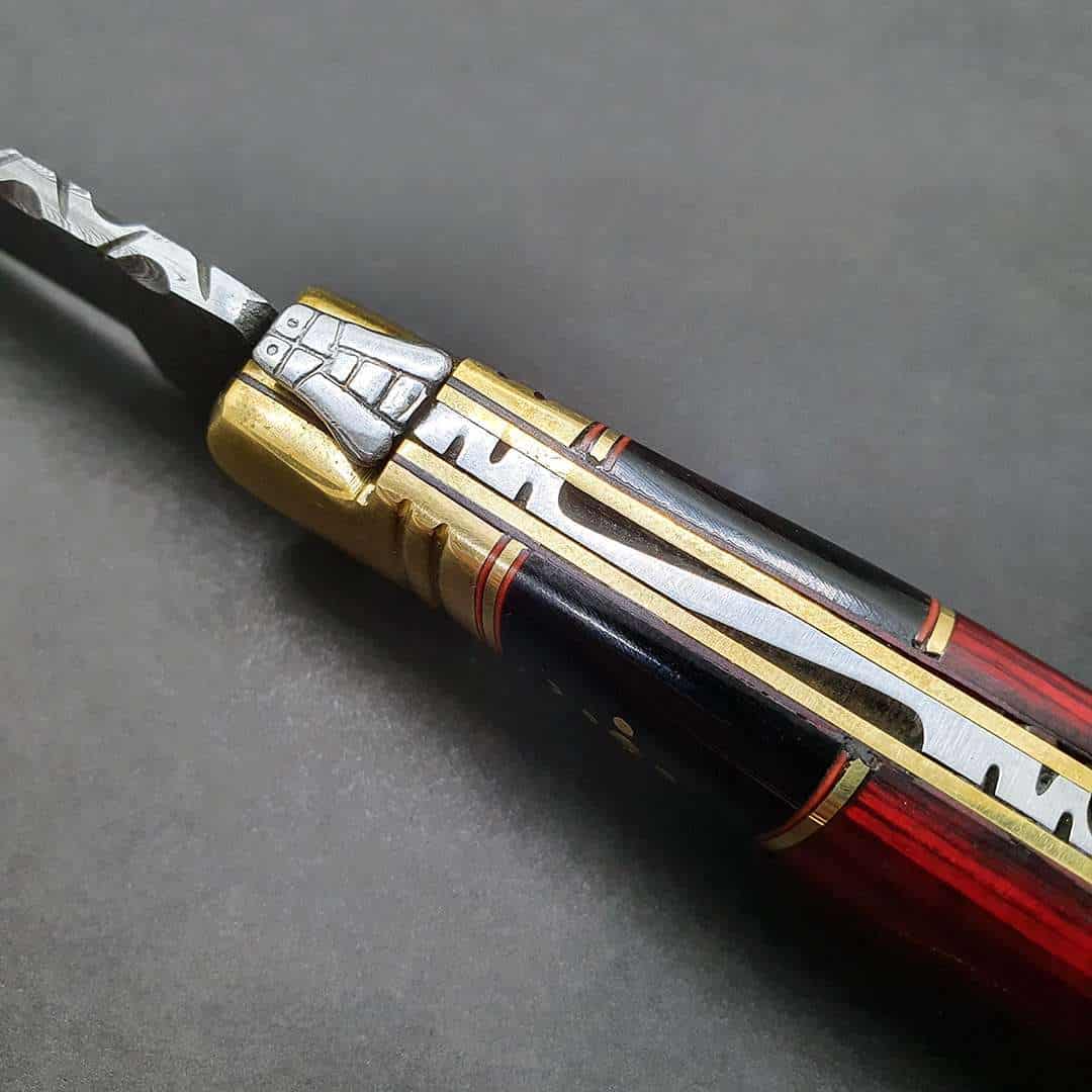 Damascus Pocket Knife with Buffalo Horn and Wood Handle