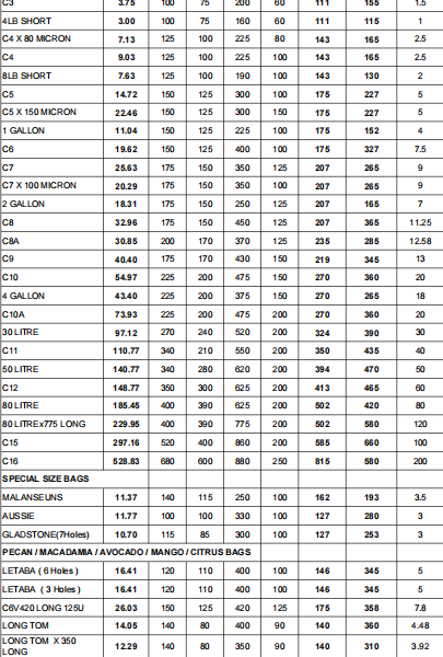 Planter Bags: C2/C3/C4/C5/C6/C7/C8/C9/C10/C11/C12/C15/C16