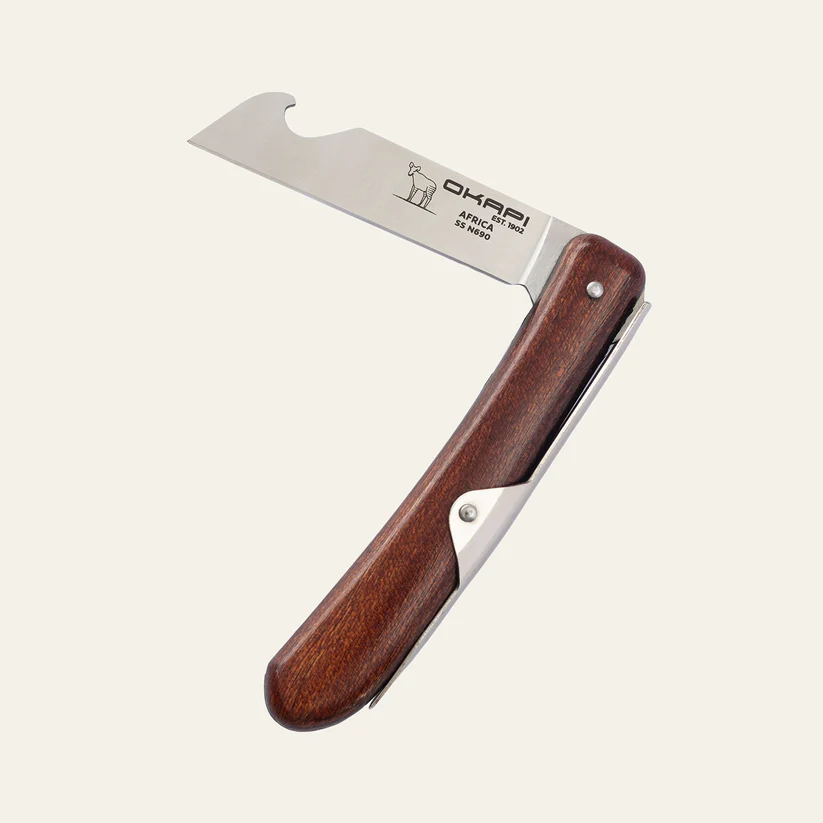 Designed for everyday convenience, this Okapi Biltong Knife features a razor-sharp N690 stainless steel blade for smooth, precise slicing. Its pocket-sized form makes it easy to carry, while the integrated bottle opener at the end of the blade adds extra utility. Whether you’re cutting biltong or cracking open a cold one, it’s the perfect all-round EDC.
