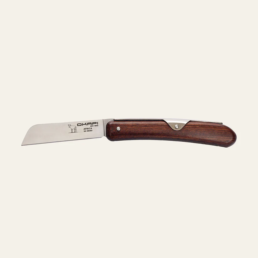 Crafted for clean cuts and everyday carry, this Okapi Biltong Knife features a premium N690 stainless steel blade, offering excellent sharpness and corrosion resistance. Its compact size slips easily into your pocket, while the fine edge delivers smooth, effortless slicing – perfect for biltong lovers and precision tasks alike.