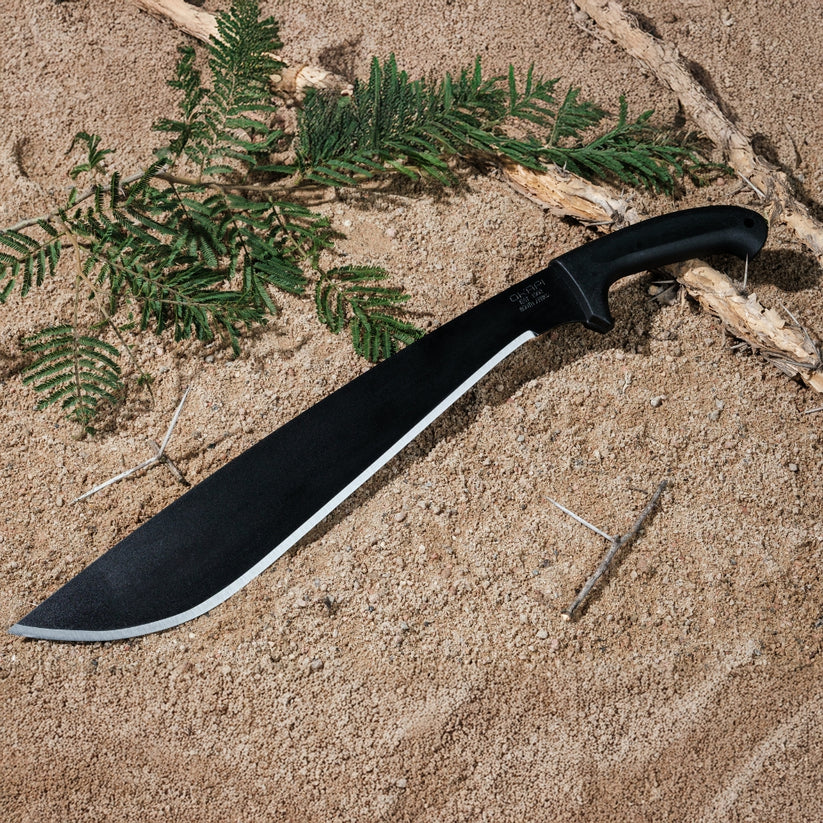 Built for the wild, this Okapi Jungle Machete features a durable carbon steel blade with a powder-coated finish for superior rust resistance and low-glare performance. Its long, broad blade is designed to power through thick brush, vines, and undergrowth with ease, making it the perfect companion for serious outdoor work and exploration.