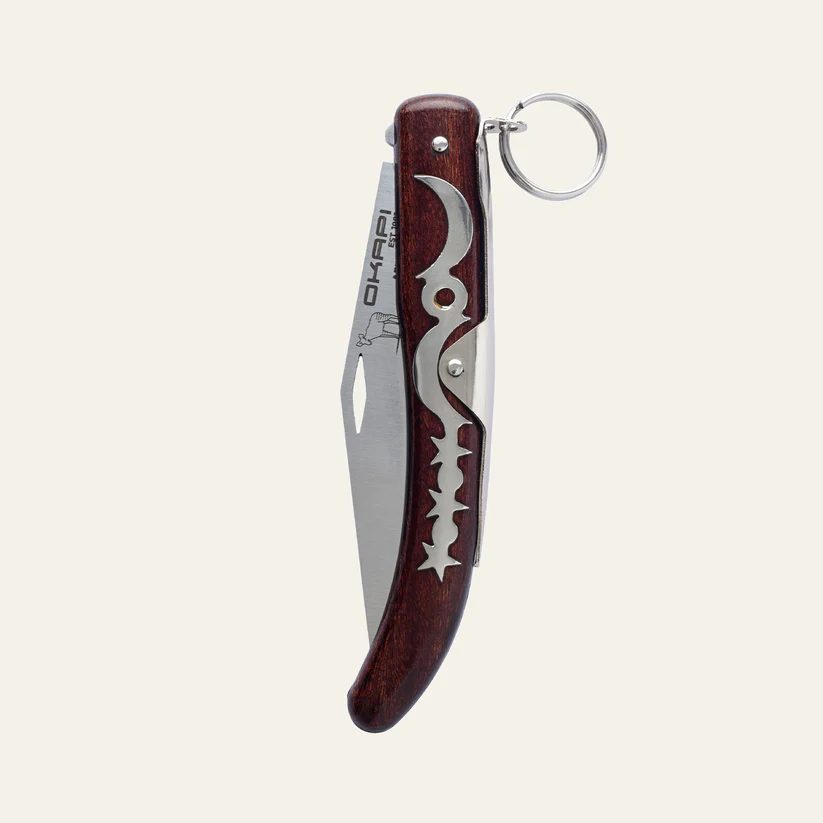 A true classic, the Okapi 907E is an iconic knife known for its rugged simplicity and time-tested reliability. Featuring a 1075 carbon steel blade that holds a sharp edge, a distinctive ratchet-lock mechanism, and its embedded moon and stars insignia, this pocket knife is built for hard work. Its stabilised wooden handle offers a comfortable grip and timeless style – perfect for everyday carry, bushcraft, or utility use.