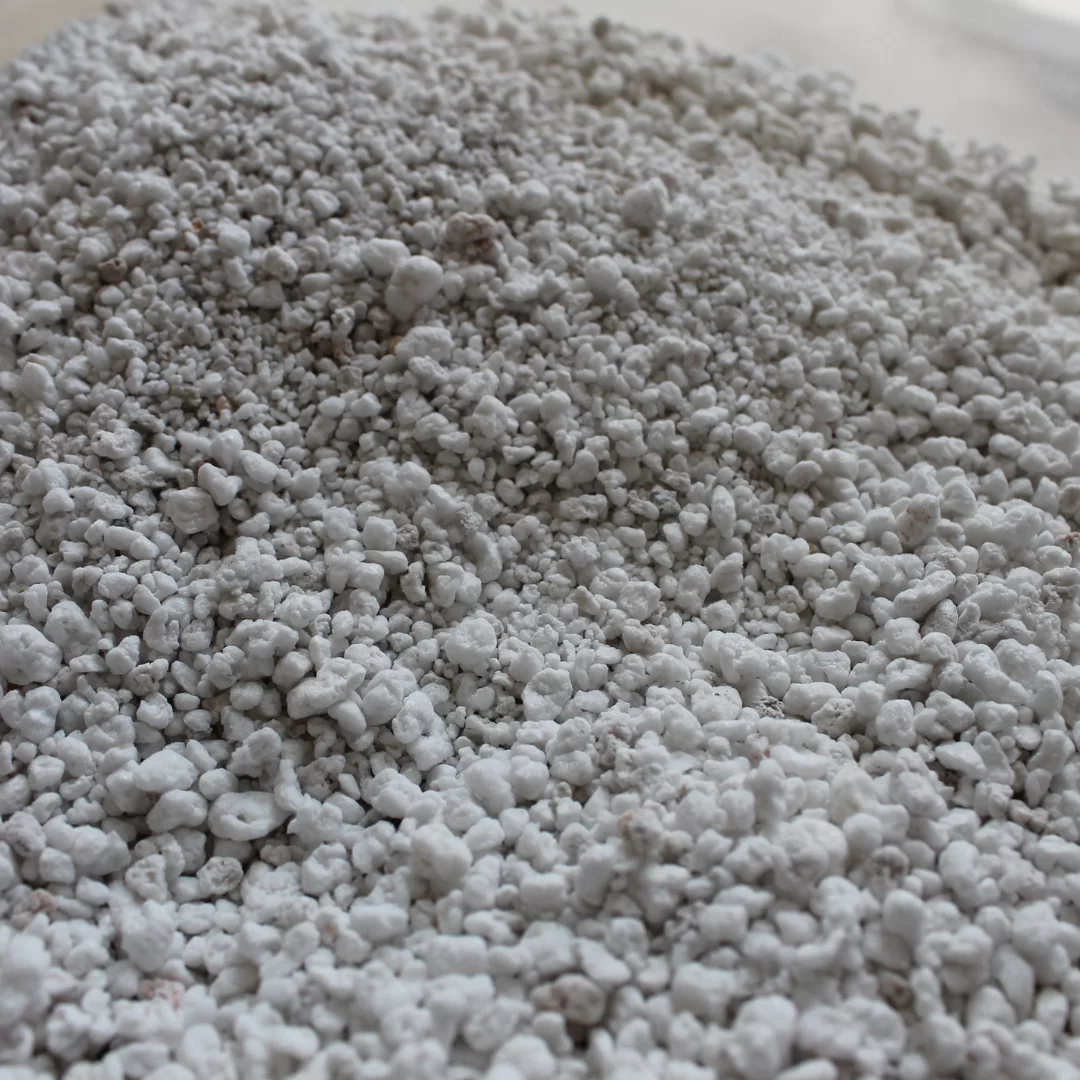 Expanded perlite ore is an excellent aggregate to add to growing mixes, or even on it’s own in hydroponics environments. It is a volcanic mineral, that when it is heated (to about 871C) the particles pop in a similar fashion to popcorn and forms a very light, white material. Similar to expanded clay, each particle is made of many tiny closed air cells. Tiny cavities cover the surface which creates a very large surface area in which moisture is held. Roots therefore have access to this water. At the same time, the shape of the individual particles creates air passages between the particles and hence provides aeration and prevents root rot. Because it is sterile and appropriate fertilizers should be added. Different grades or sizes are suitable for different applications.