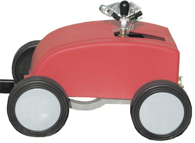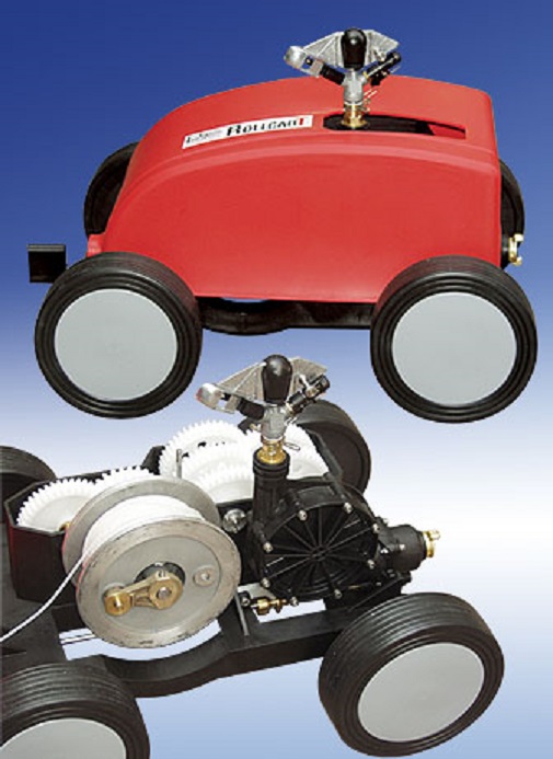 Using a part circle sprinkler the RollcarT-V always travels on dry lawn.